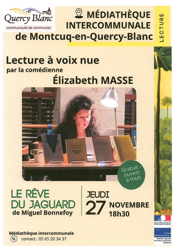 Lecture à voix nue « Le rêve du Jaguard » à la médithèque de Montcuq