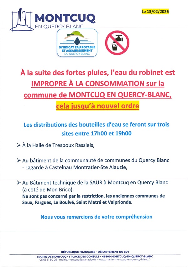 Eau non potable sur la commune de Montcuq en Quercy-Blanc.